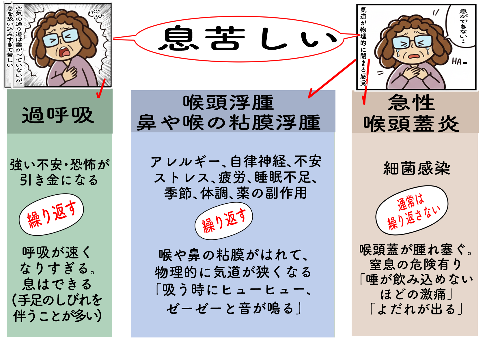息苦しさの後の症状、大事な違い